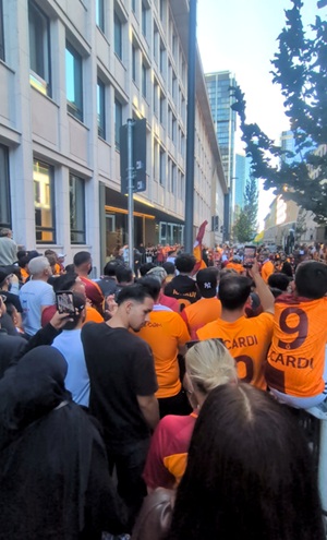 市街を散策していた際、アウェイのガラタサライ・サポーターが選手の宿泊するホテル前に集まっておりその周囲を何十人もの警察官が警備する物々しい雰囲気となっていました。